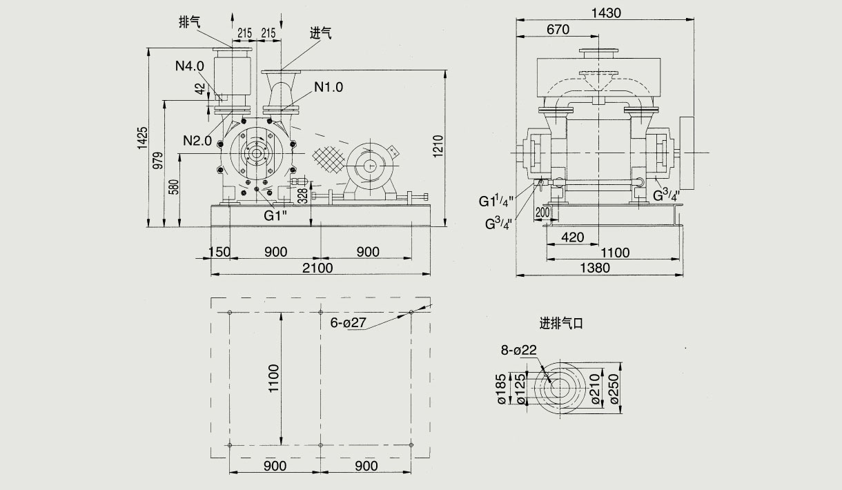 氣冷式直排大氣羅茨真空機(jī)組